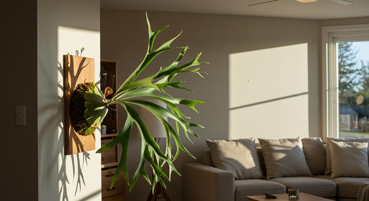 アルシコルネは強い直射日光が苦手で、明るい日陰でよく育ちます。窓辺のレースカーテン越しや、午前中だけ日が当たる場所が向いています。葉焼けを防ぎつつ光量は確保しましょう。