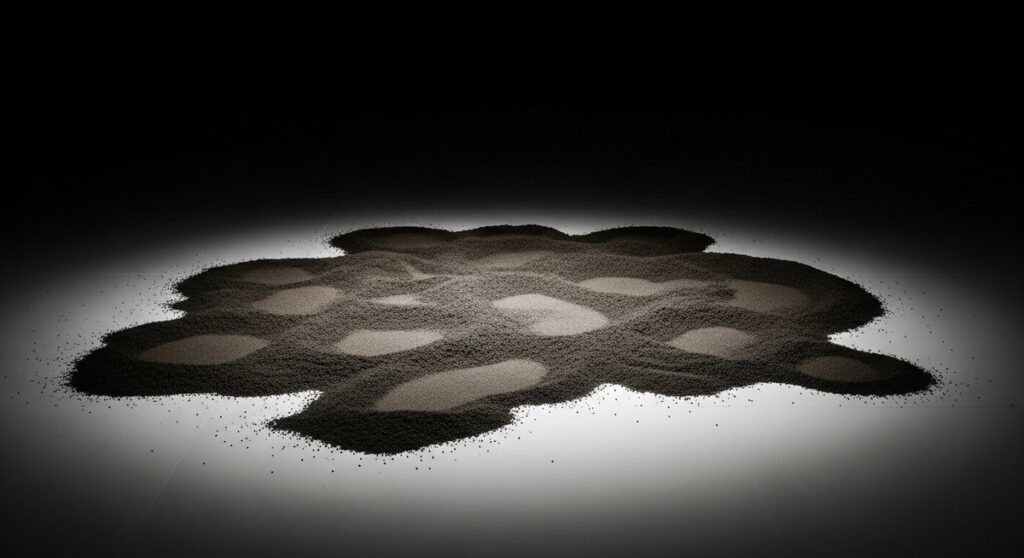 富士砂は輸送中や使用中に粒同士が擦れ合い、黒い細かい粉(微塵)が発生しやすい素材です。袋から出したばかりの状態や、水やりをした際にこの黒い粉が流れ出し、鉢底から出てくることがあります。