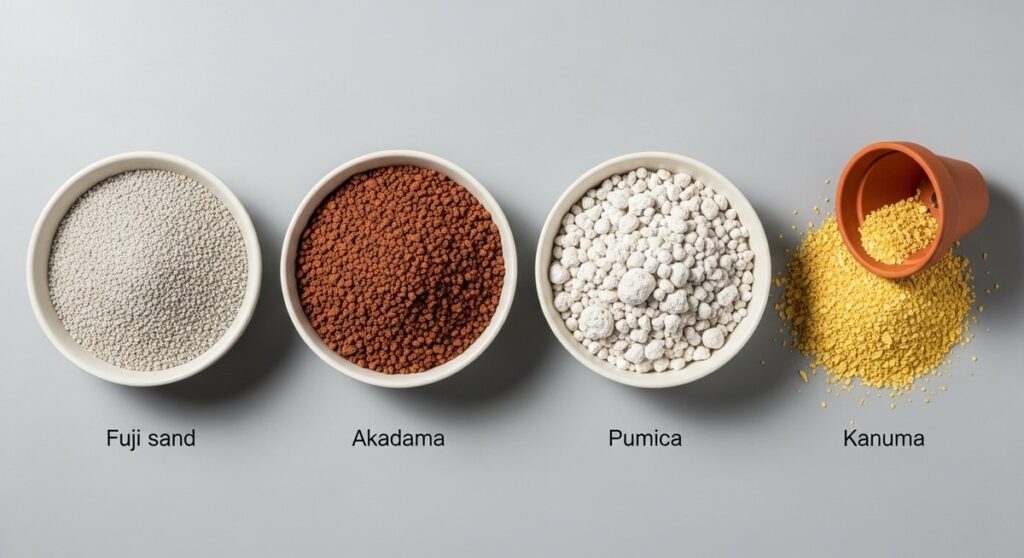 園芸でよく使われる他の基本用土と比べることで、富士砂の個性がより際立ちます。他の土のメリットが富士砂では不足していることもあるため、それぞれの特徴を知って、自分の管理スタイルに最適な配合を見つけましょう。