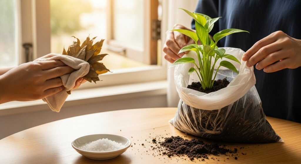 「すぐに捨てるのは忍びない」という方は、最後にもう一度だけ植物の生命力を信じて、いくつかのレスキュー処置を試してみてください。これらの確認作業を行うことで、「やれることはやった」という納得感が生まれ、もし結果的にダメだったとしても、後悔なく手放すことができるようになります。