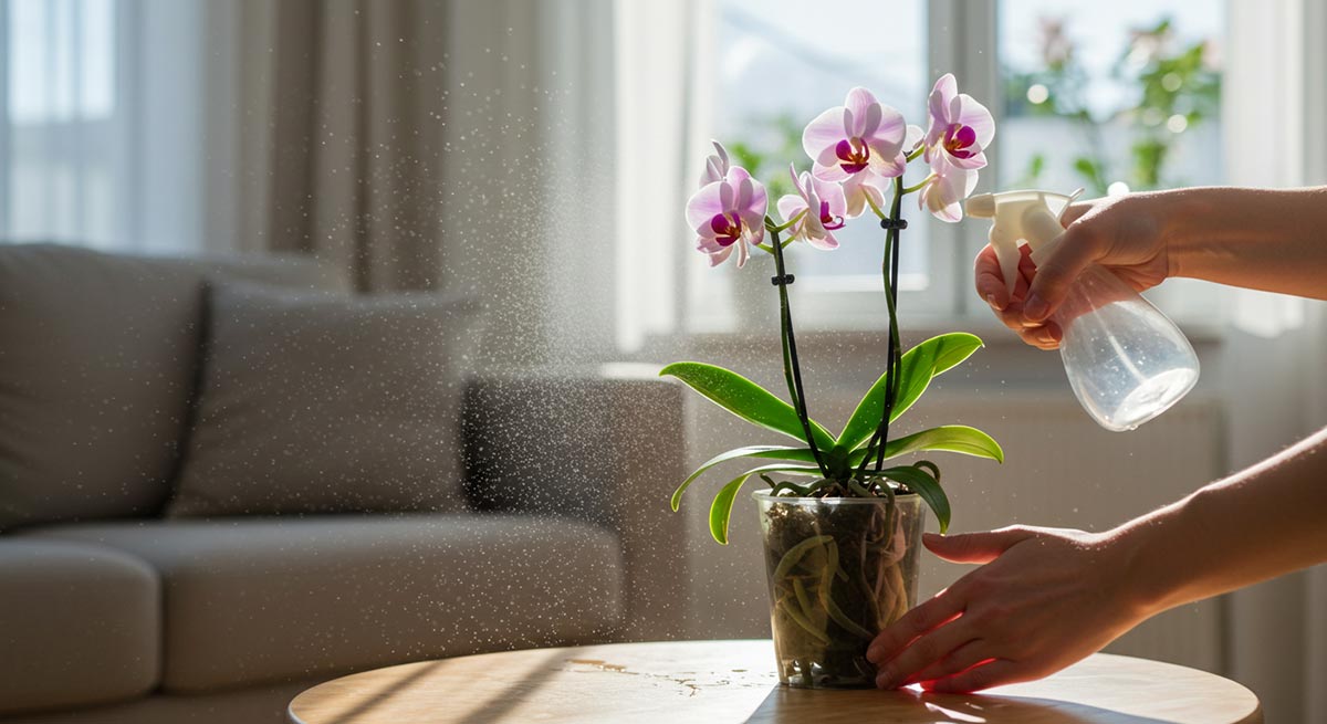 ミニ胡蝶蘭は湿度を好みますが、高すぎると病気の原因になります。湿度は50パーセント前後を保つと葉や根が健全に育ちます。特に暖房で室内が乾燥しやすい冬は加湿を検討してください。