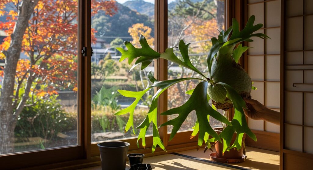 ビカクシダの原産地は熱帯〜亜熱帯で、比較的高温多湿な環境に育ちます。昼間は明るく温度が上がり、夜間はやや冷えるというリズムがあるため、屋内でもその季節性を模倣すると管理しやすくなります。成長期は温暖で湿度が高く、休眠期は気温が下がり乾燥が進むことを踏まえて頻度を調整します。