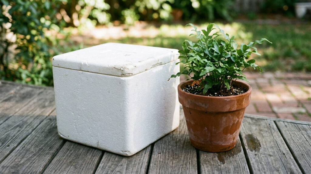 発泡スチロールを鉢の周りや下に配置することで、外の厳しい寒さが直接植物に伝わるのを防ぐことができます。実は、家を建てる際の壁の中にも似たような素材が断熱材として使われていることがあります。それほどまでに熱を遮る力が強いのです。